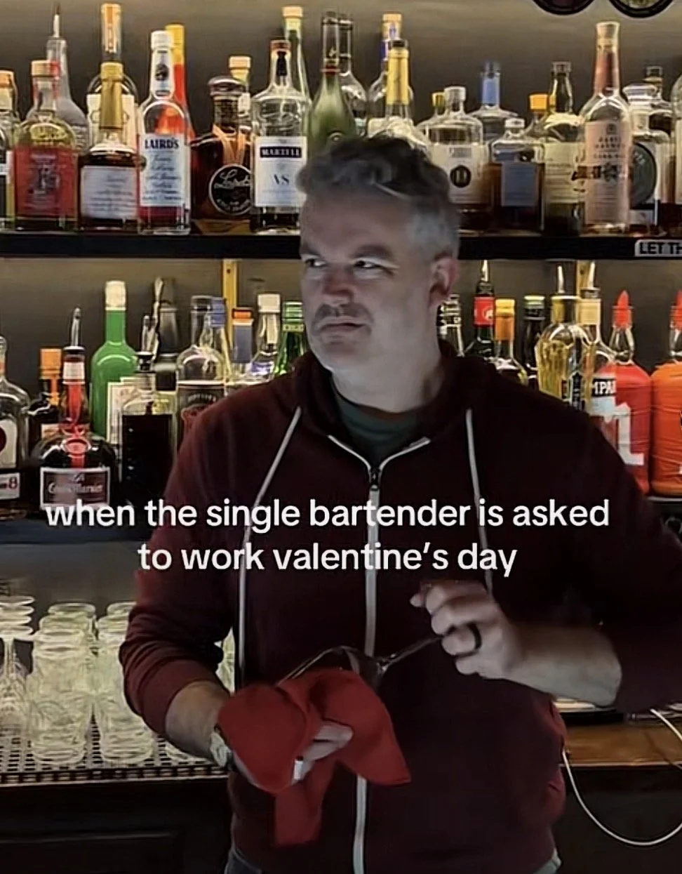 Rock star bartender wearing a bedazzled belt.